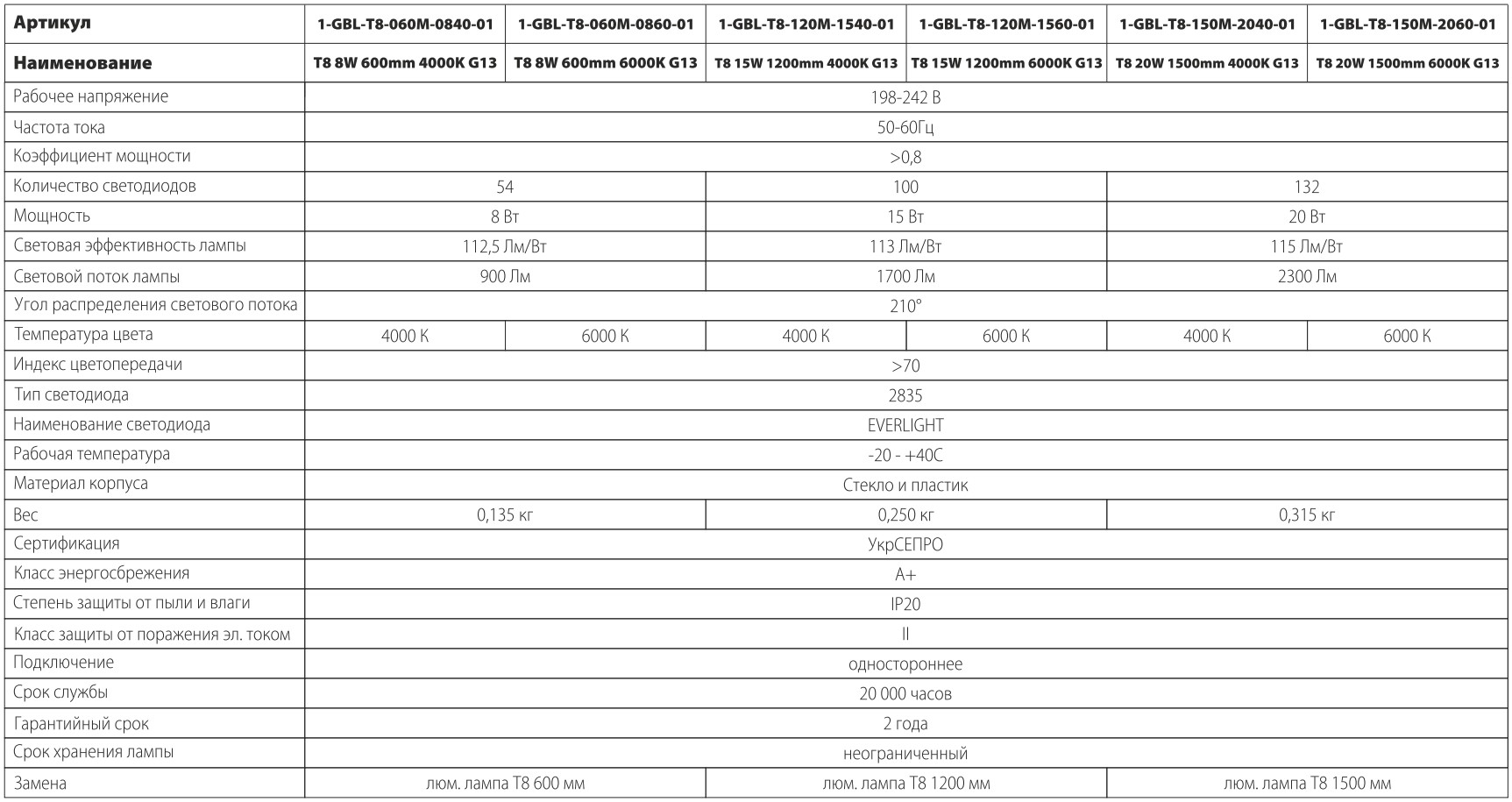Светодиодные лампы GLOBAL LED T8 не содержат паров ртути. Они абсолютно безопасны и не нуждаются в специальной утилизации.