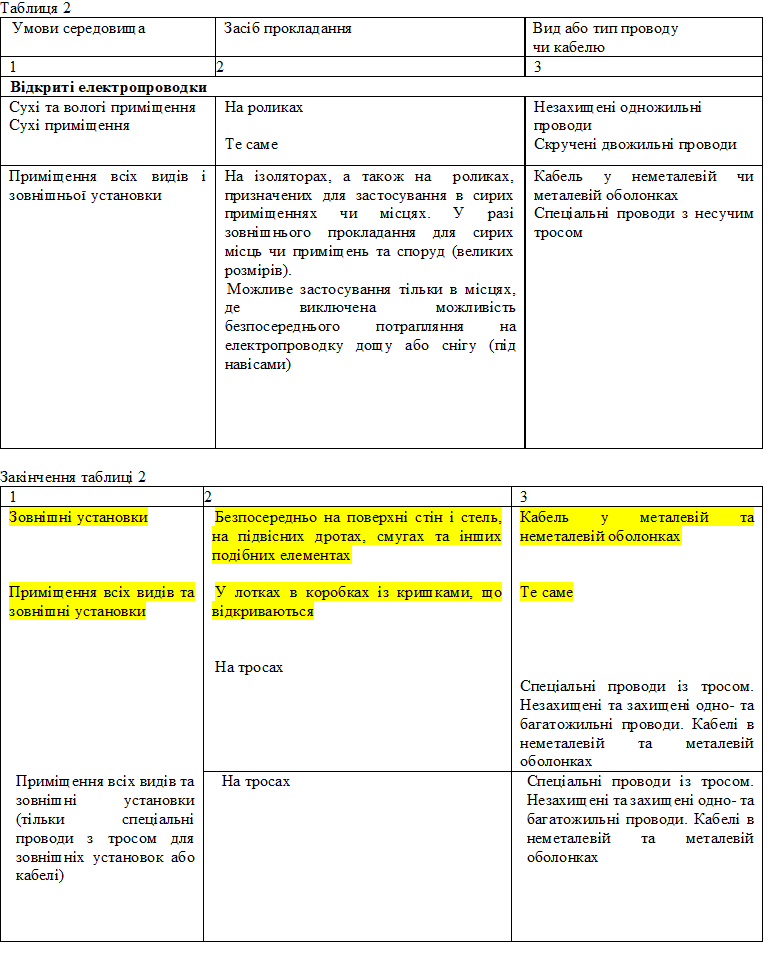 2. а так же не указано в табл.2 как прокладывать защищеный провод при открытой проводке