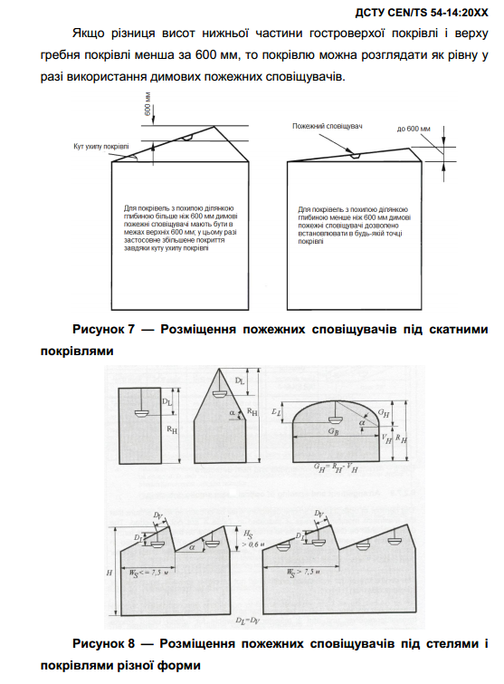 - дахи типу "північне свіло" (пилкообразні) захищаються сповіщувачем, що встановлюється на метр нижче верхівки.