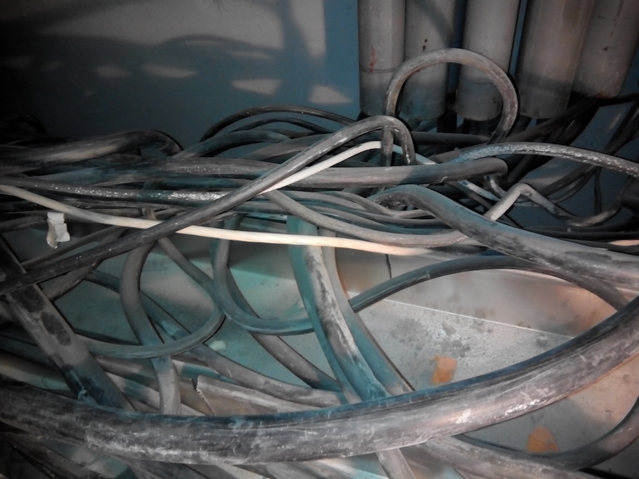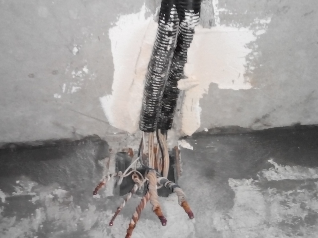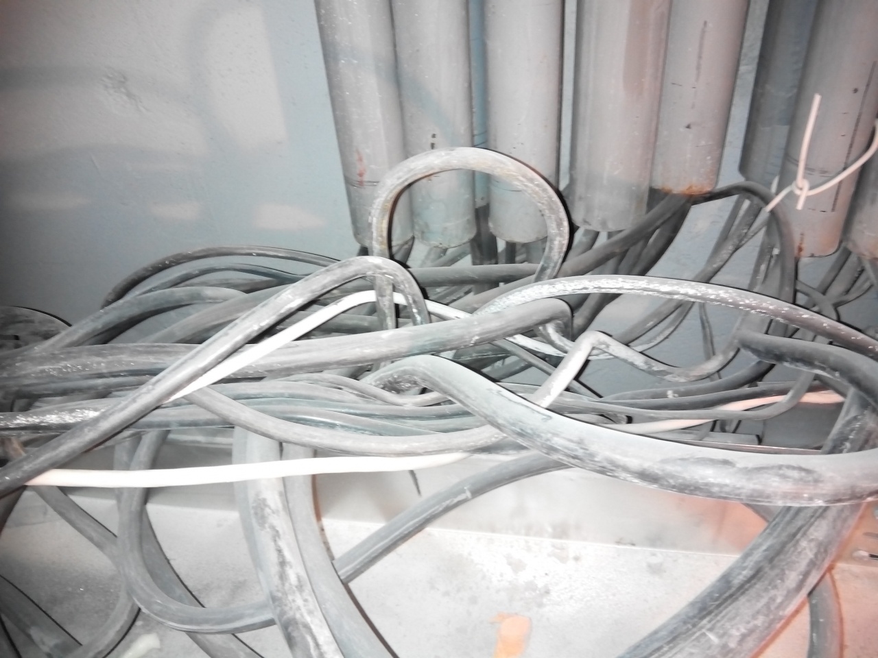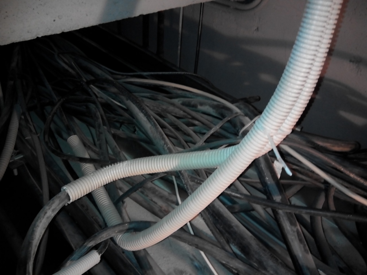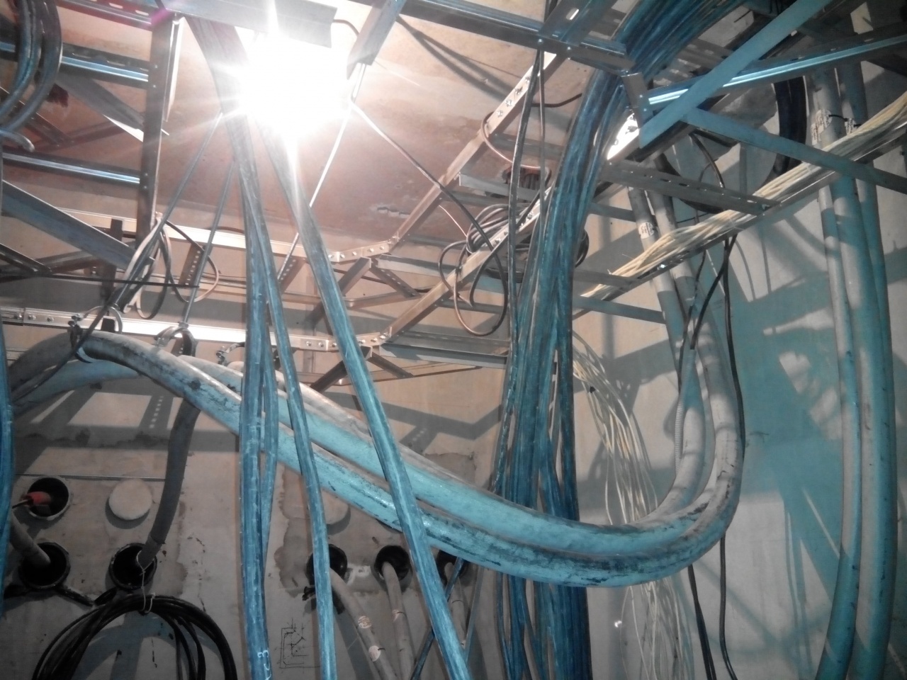 Спуск с вертикального стояка жилой секции 20-ти этажного дома....аккуратная укладка в лотки....