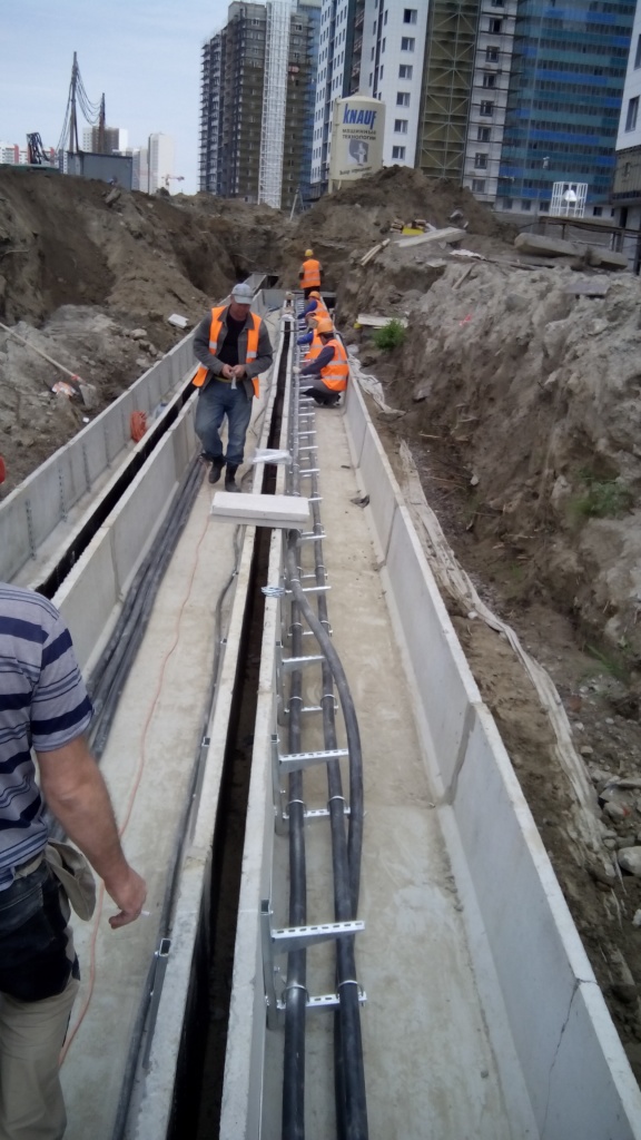 прокладка вводных кабелей от ГРЩ на ВРУ жилых секций ы бетонных лотках