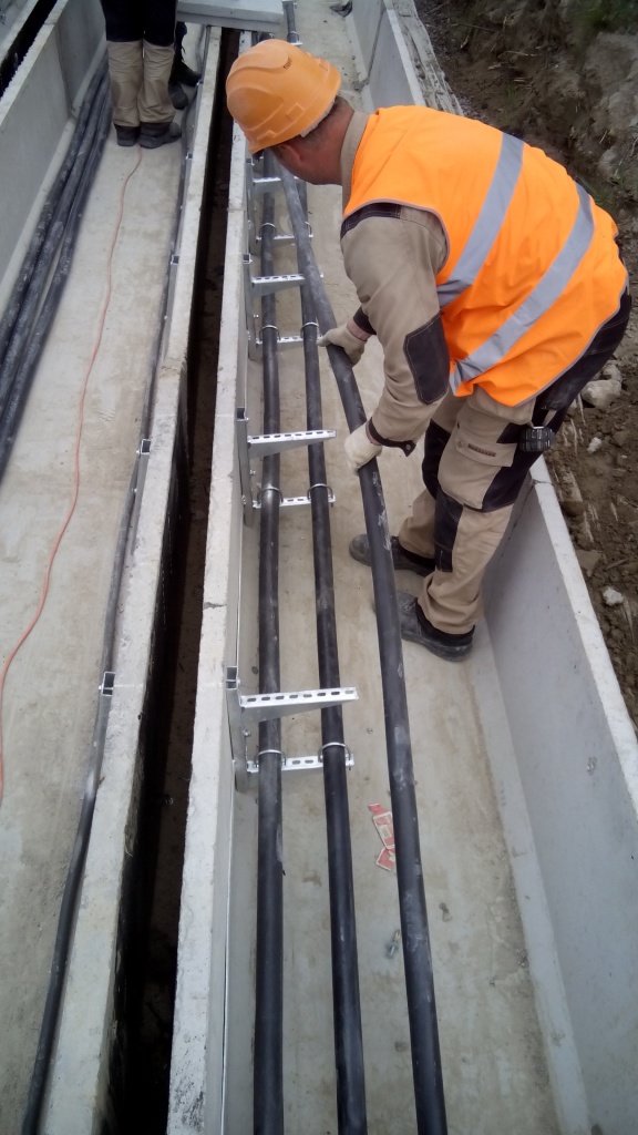 прокладка вводных кабелей от ГРЩ на ВРУ жилых секций ы бетонных лотках