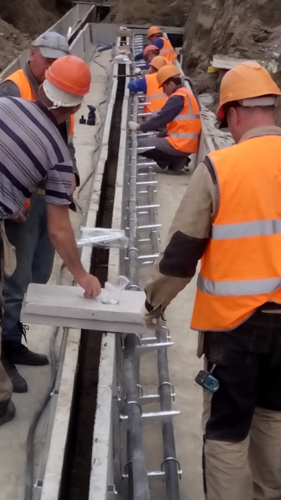 прокладка вводных кабелей от ГРЩ на ВРУ жилых секций ы бетонных лотках