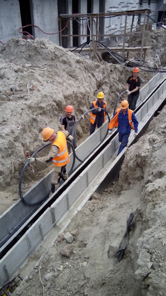 прокладка вводных кабелей от ГРЩ на ВРУ жилых секций ы бетонных лотках