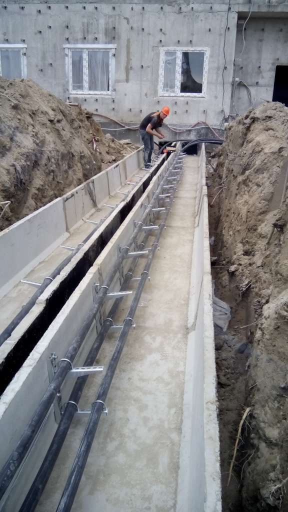 прокладка вводных кабелей от ГРЩ на ВРУ жилых секций ы бетонных лотках