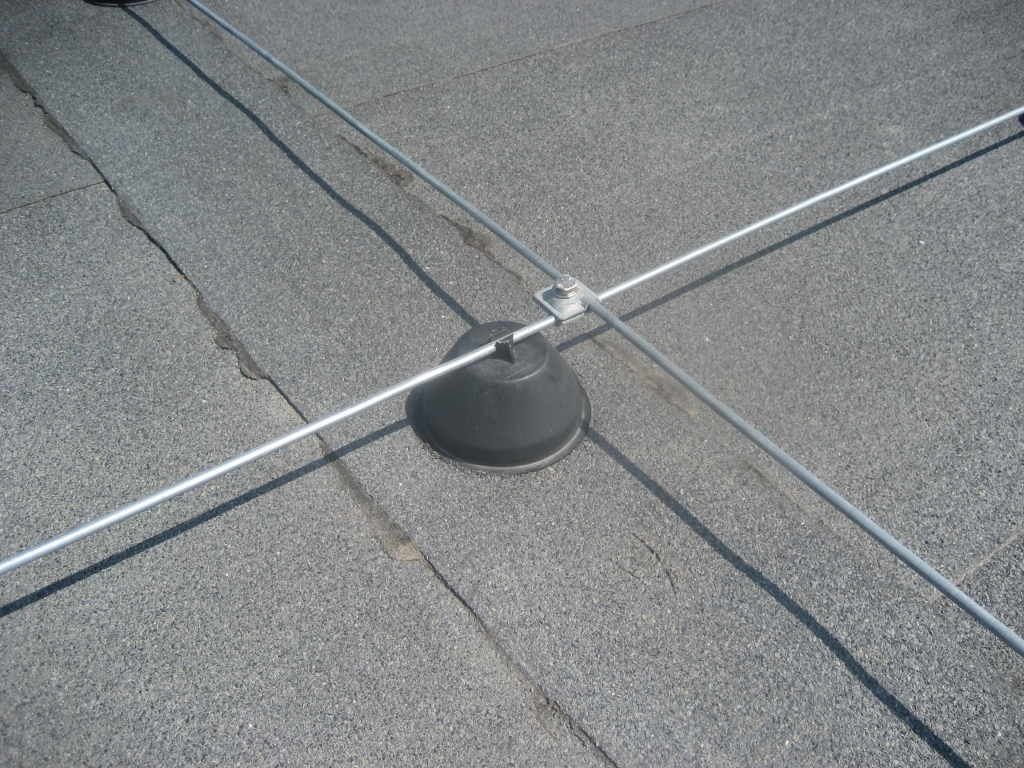 Держатель круглого проводника на кровле. Пластиковый держатель заполнен бетоном.